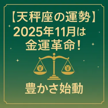 2025年11月の天秤座の運勢を徹底解説。今月はあなたの才能が豊かさに変わる大チャンス!全体運・恋愛運・仕事運・金運はもちろん、週ごとのアドバイスやラッキーデーも紹介。五感を満たし、最高の金運を掴む1ヶ月をサポートします。