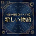 獅子座の週間運勢(2/9〜2/15)を告知する画像。星空背景に金の装飾枠と王冠、右上に獅子のイラストと星座。中央に「獅子座 今週の運勢【2/9〜2/15】大きな成功」の文字。 しし座